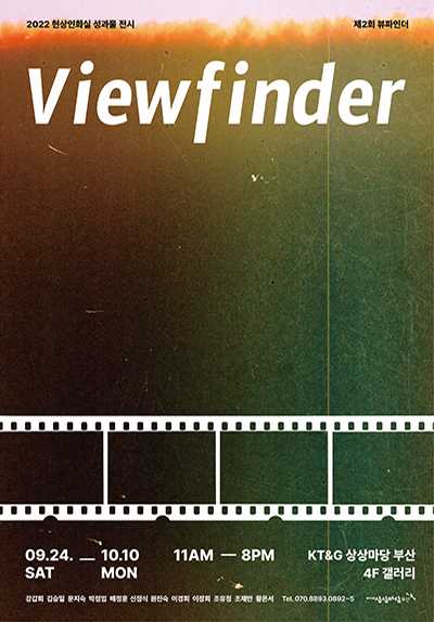 <img src="/feah/temp/2022/202209/b4187f96-b5db-4b7c-bd7e-7105d9a3e536" /><br /> <br /> ● 전 시 명 l KT&G 상상마당 부산 현상인화실 성과물전시 : 제2회 < VIEWFINDER><br /> ● 참여작가ㅣ 강갑회, 김승일, 문지숙, 박정임, 배정훈, 신정식, 원진숙, 이경희, 이장희, 조유정, 조재만, 황은서<br /> ● 전시일정 l 2022. 09. 24(토) – 10.10(월)<br /> ● 운영시간 l 11:00 - 20:00 *별도 휴관일 없음<br /> ● 전시장소 l KT&G 상상마당 부산 갤러리 4F<br /> ● 문 의 l 070-8893-0892~4<br /> <br /> 2022 현상인화실 성과물 전시 : 제2회 VIEWFINDER<br /> 2022. 9. 24. SAT – 10. 10. MON<br /> <br /> KT&G 상상마당 부산 갤러리는 2022 현상인화실 성과물 전시 제2회 <Viewfinder>를 개최합니다. 올해 2회를 맞이한 <Viewfinder>는 부울경 지역 내<br /> 일반 대중에게 유일하게 개방된 KT&G 상상마당 부산의 현상인화실 전문인력 양성과정을 통해 신진작가로 거듭난 수강생 12명의 흑백 사진 작품 51점을 선보입니다.<br /> 전시 제목 ‘뷰파인더(Viewfinder)’는 피사체를 관찰하는 카메라의 광학 장치를 의미합니다. 사진은 뷰파인더를 통해 대상을 포착하는 순간에서 시작되어<br /> 고유의 암실 작업을 통해 완성됩니다. 흔한 풍경의 가치가 ‘파인더(The Finder, 발견자)’에 의해 되살아나는 것입니다.<br /> 흑백 사진은 사진술의 근원인 동시에 깊은 매력을 지닌 매체로 고화질 미디어가 다량 보급되어 컬러 홍수를 이루고 다채로운 색감이 미학의 기준이 된<br /> 디지털 시대에 도리어 귀한 가치를 드러내며 우리가 오랫동안 잊고 있던 정통 사진의 묘미를 다시 한번 각인시켜 줍니다.<br /> 이번 전시는 참여 작가 12명의 색다른 작업 세계를 조명하여 사진에 대한 순수한 열정과 피사체를 탐구하는 다채로운 시선을 나누고 이를 통해 사라져가는<br /> 아날로그 작업인 흑백 사진 문화를 널리 알리고자 합니다. 더불어 지역 사진 문화를 양성하고 흑백 사진에 대한 진입 장벽을 낮추기 위해<br /> 다양한 사진 교육 프로그램을 시도하는 KT&G 상상마당 부산 현상인화실에 여러분의 많은 관심 부탁드립니다.